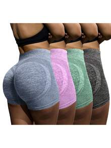 4 piezas Shorts deportivos con textura de mármol que realzan el trasero, shorts con estiramiento alto, shorts elásticos para mujer, shorts para gimnasio, shorts de ciclista