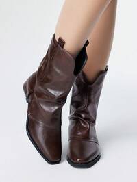 Fairycore Botas de motocicleta marrones para mujer, botas occidentales de punta puntiaguda con slip-on, botas de tobillo y botas cortas de estilo universitario con fuste