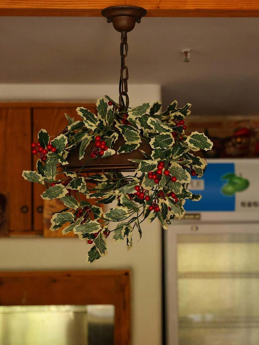 Guirnalda De Navidad De 5.8 Pies, Plantas Artificiales De Bayas Rojas, Vid De Hojas De Acebo, Decoración De Flores Y Bayas Para Mesa, Corona De Ratán Para Decoración Del Hogar