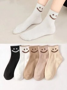 5 Pares De Calcetines De Media Pantorrilla Vintage Con La Cara De Mujer