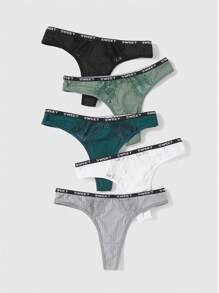 5 Unids/set Bragas Triangulares Recortadas Con Encaje Estampado De Letras