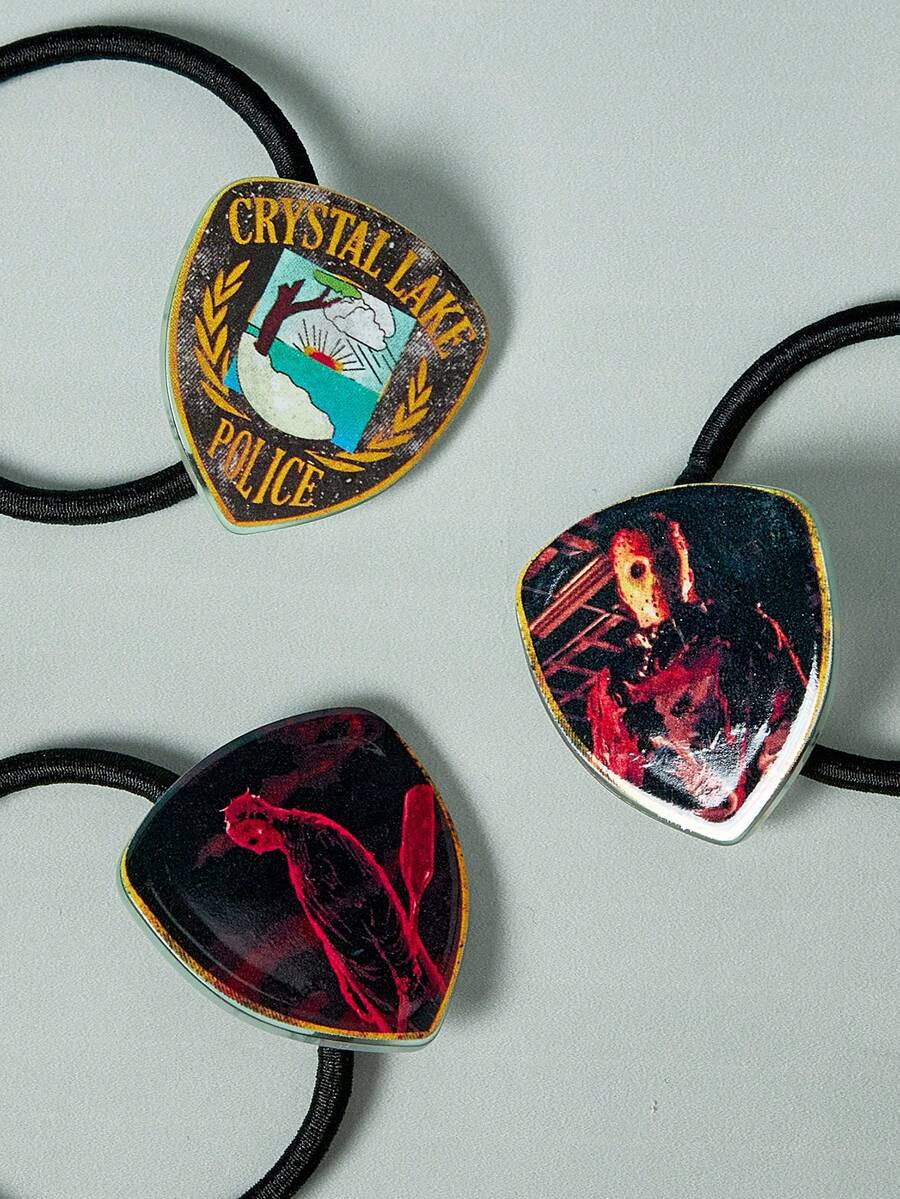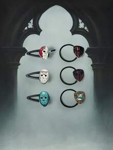 Friday the 13th X ROMWE 6 piezas Colaboración Clips para el cabello y ligas de acrilico sin costuras con temática de películas de terror gótico oscuro