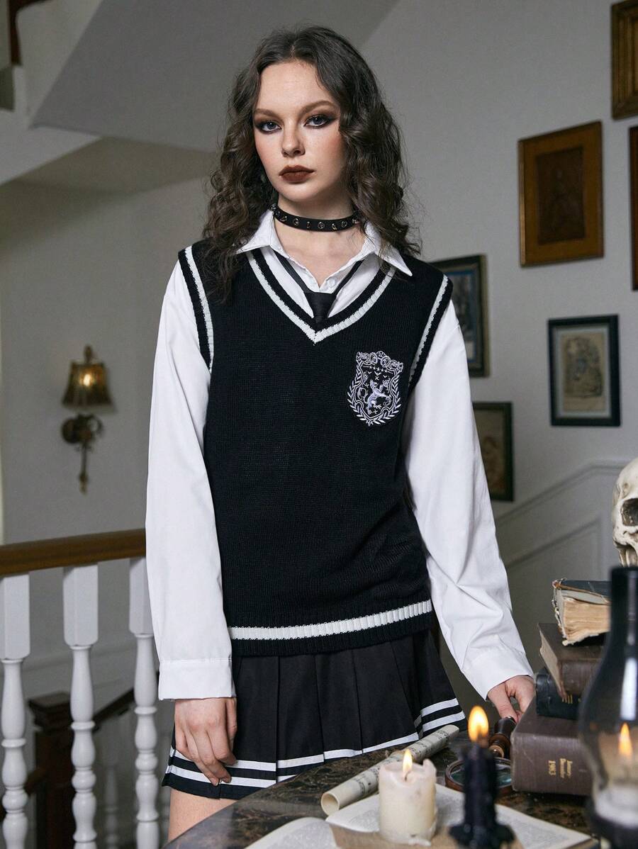Academia Chaleco de punto distintivo con bordado ribete de rayas sin camisa