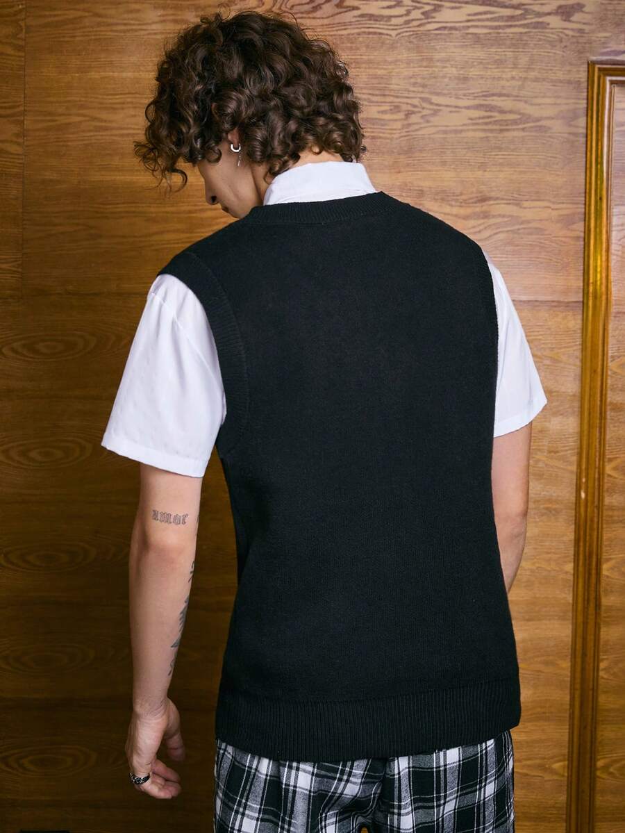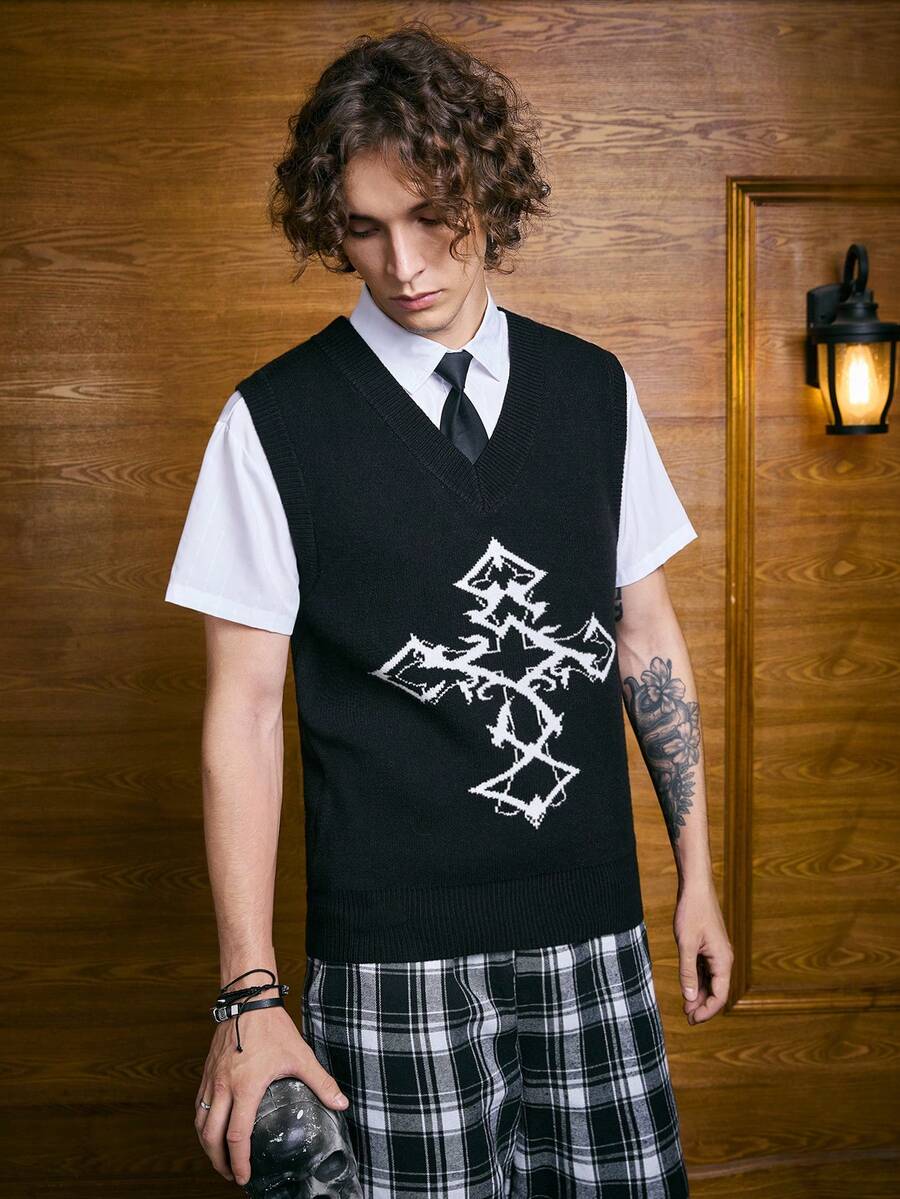 Academia Hombres Chaleco de punto patrón cruzado sin camisa