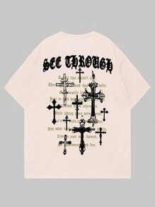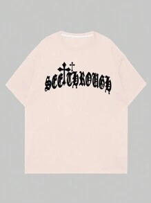 Academia Hombres Camiseta de hombros caídos con slogan & cruzado con estampado