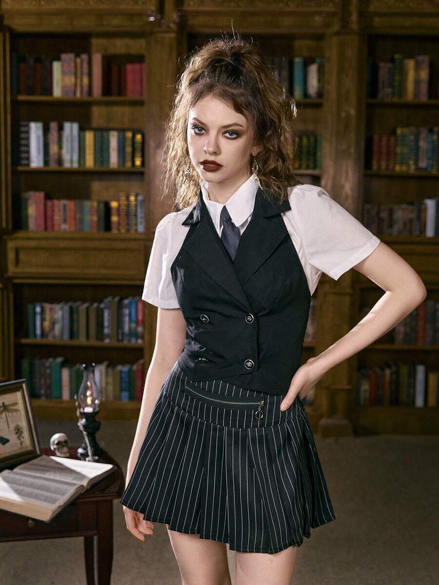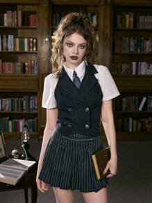 Academia Chaleco unicolor de doble botonadura sin camisa