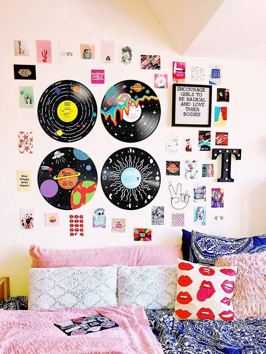 Pegatina de pared con diseño de disco de vinilo de tamaño real, decoración de pared adecuada para dormitorio, decoración de habitación de adolescente, decoración de estilo retro hippie, pegatina de pared, calcomanía de vinilo para decoración del hogar, artículos de decoración de primavera para renovar su hogar, pegatinas de decoración Rama