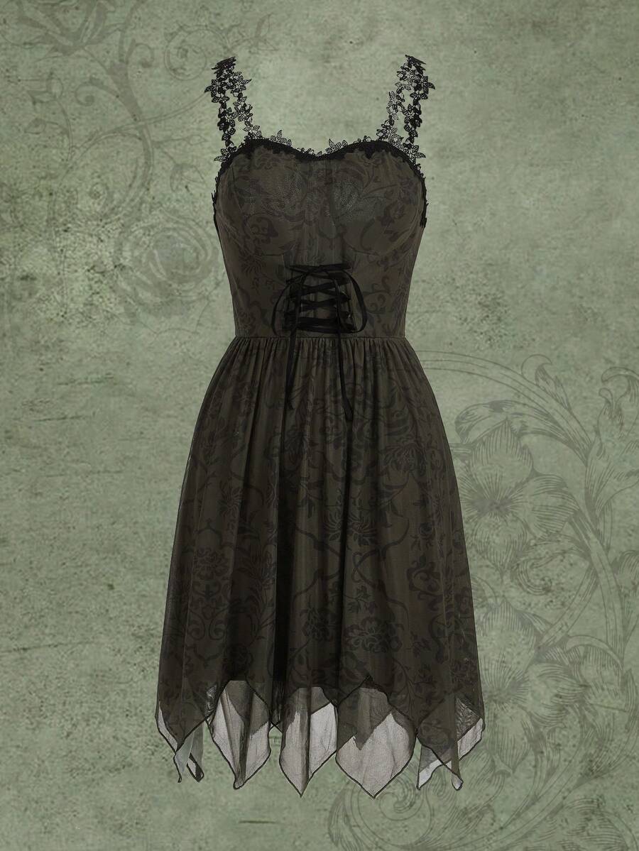 Vestido de tirantes con estampado con cordón con encaje en contraste