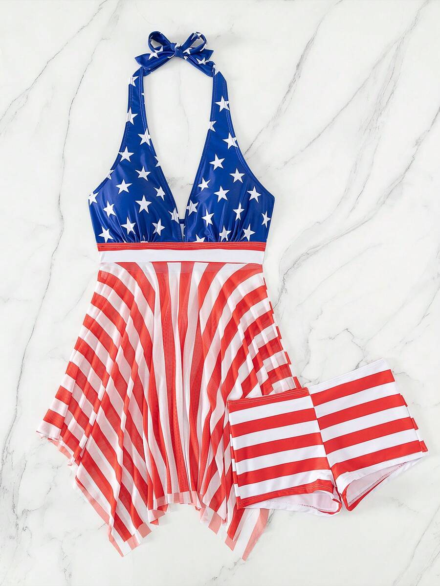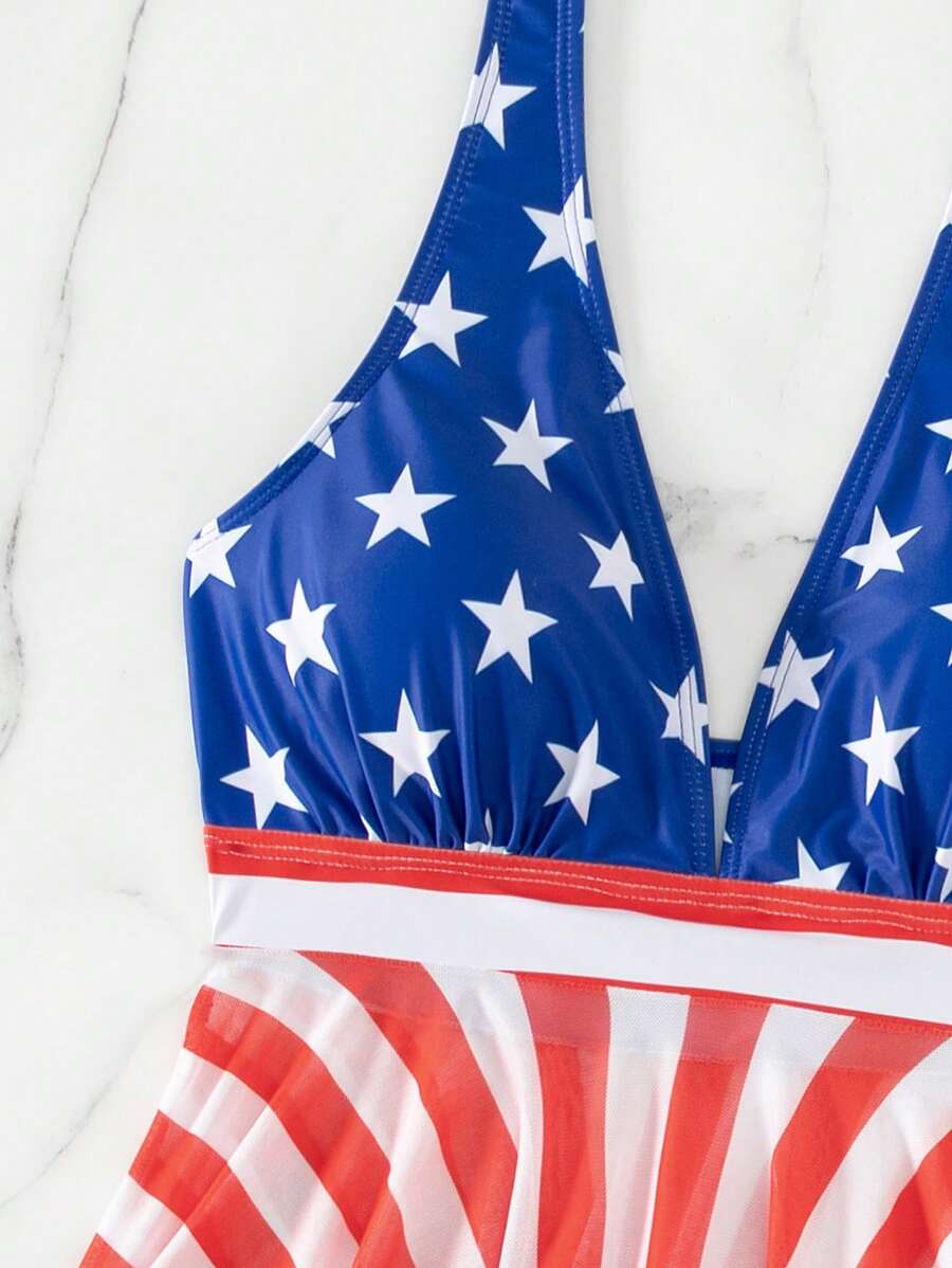 Tankini de halter con estampado de bandera estadounidense para verano y playa