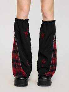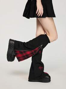 Anime 1 par de calentadores de piernas con cremallera, estampado de cuadros y estrellas en estilo patchwork Y2K, elegantes y vintage, adecuados para uso diario, escuela, vacaciones, citas, Halloween, Navidad y otras ocasiones