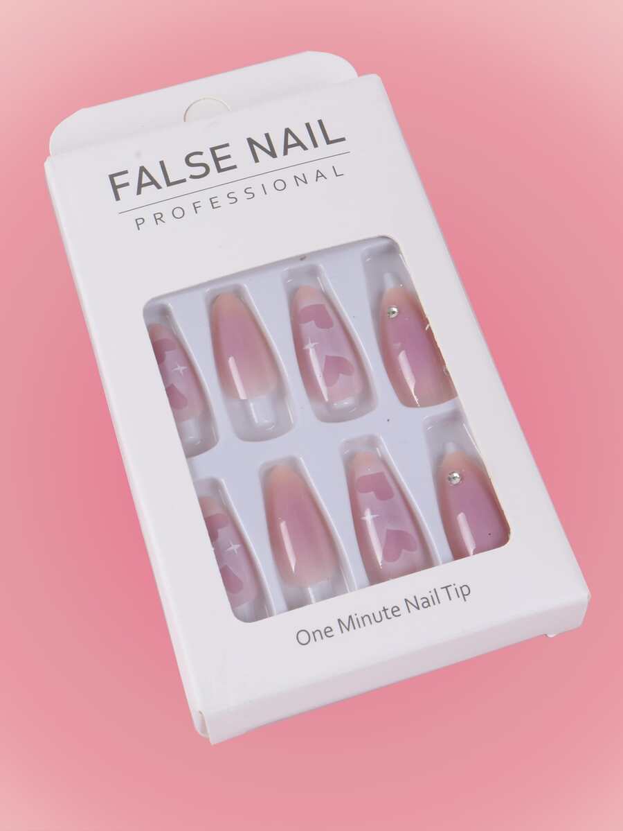 Anime 24 piezas con estampado de corazón Uña postiza & 1 hoja cinta