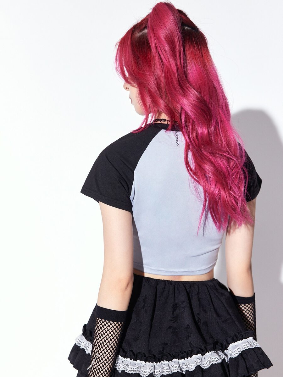 Anime Camiseta con estampado de oso de manga raglán