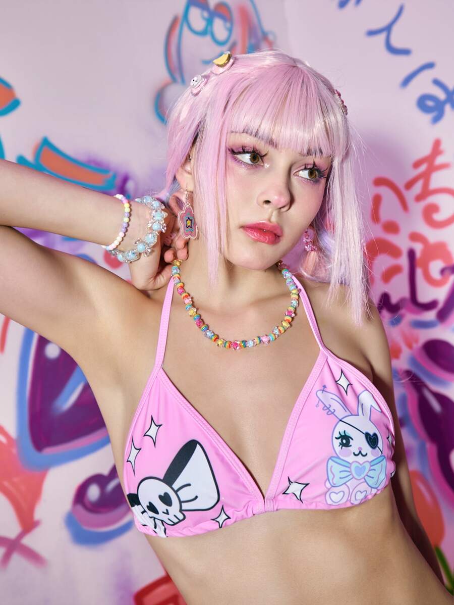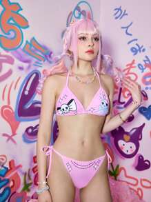 Anime Bikini de tiras estilo halter con diseño de estampado de dibujos animados