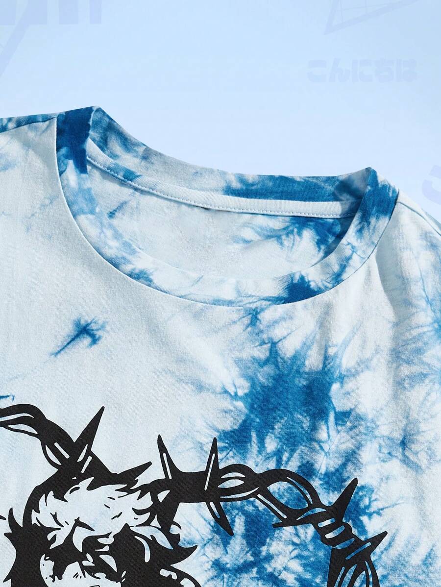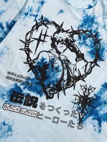 Anime Hombres Camiseta algodón de tie dye con estampado de slogan