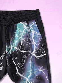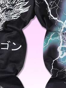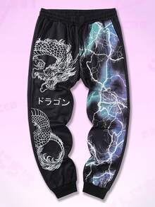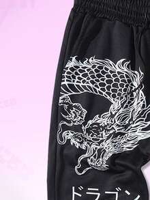 Anime Hombres Pantalones deportivos con estampado de dragón de cintura con cordón