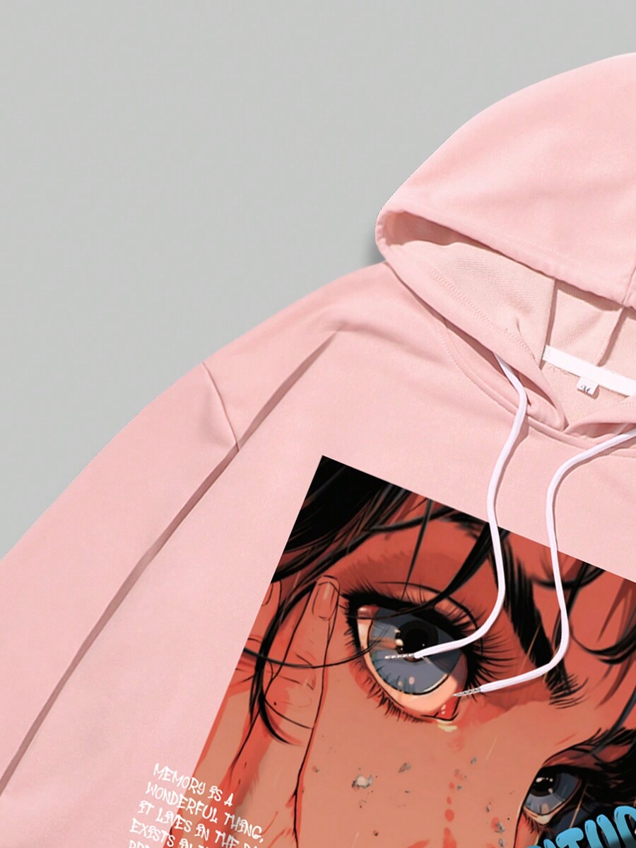 Anime Hoodie Térmico Con Cordón Y Gráficos De Eslogan Y Figura Para Hombre