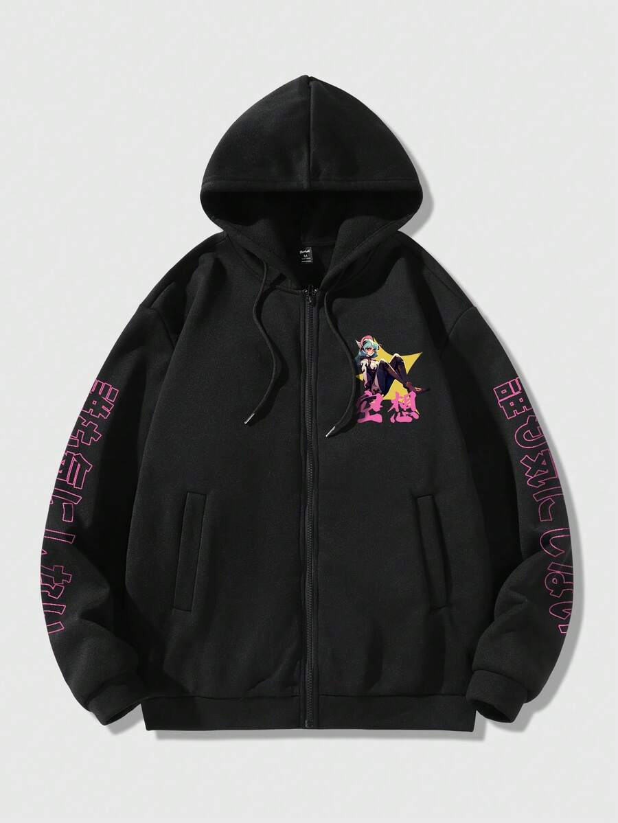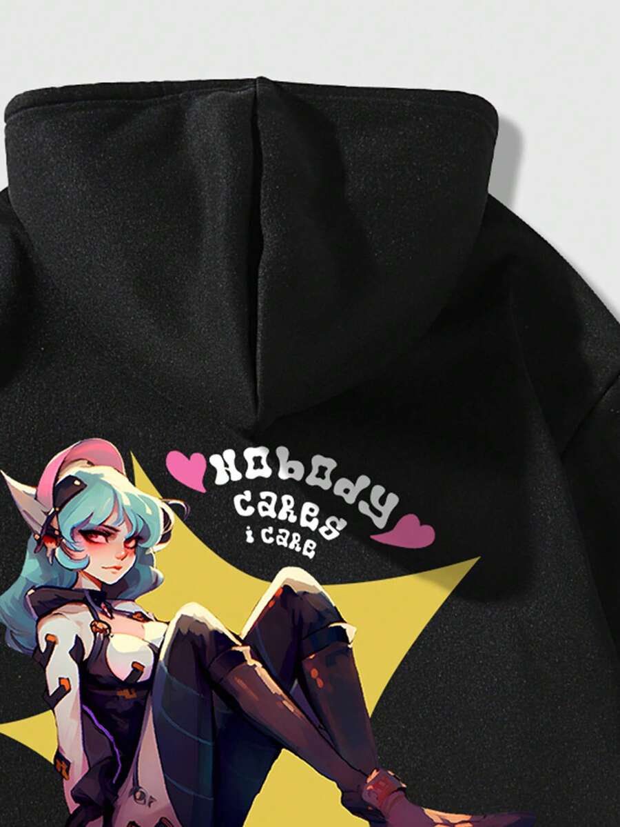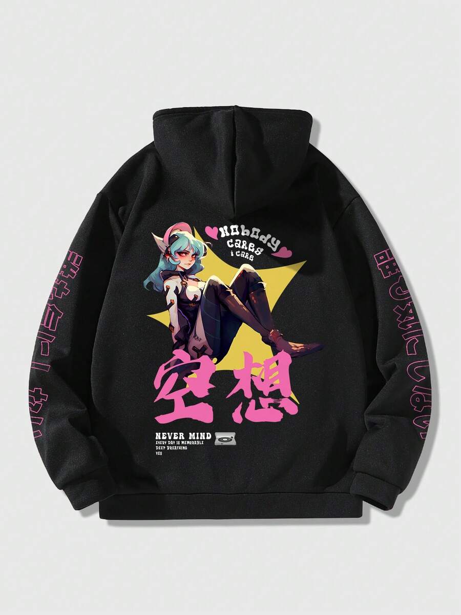 Anime Hoodie Para Hombre Con Caracteres De Dibujos Animados E Impresión De Letras