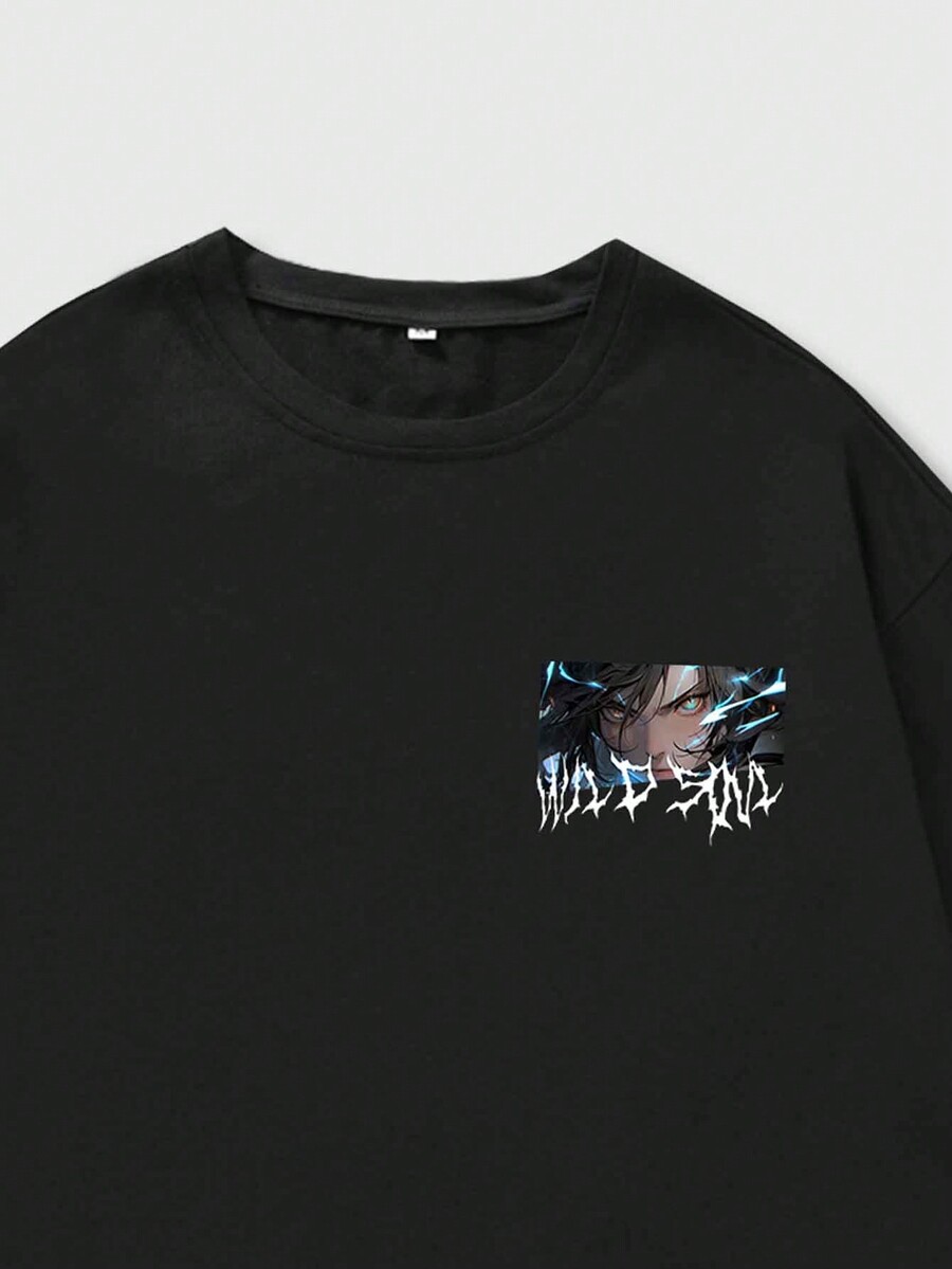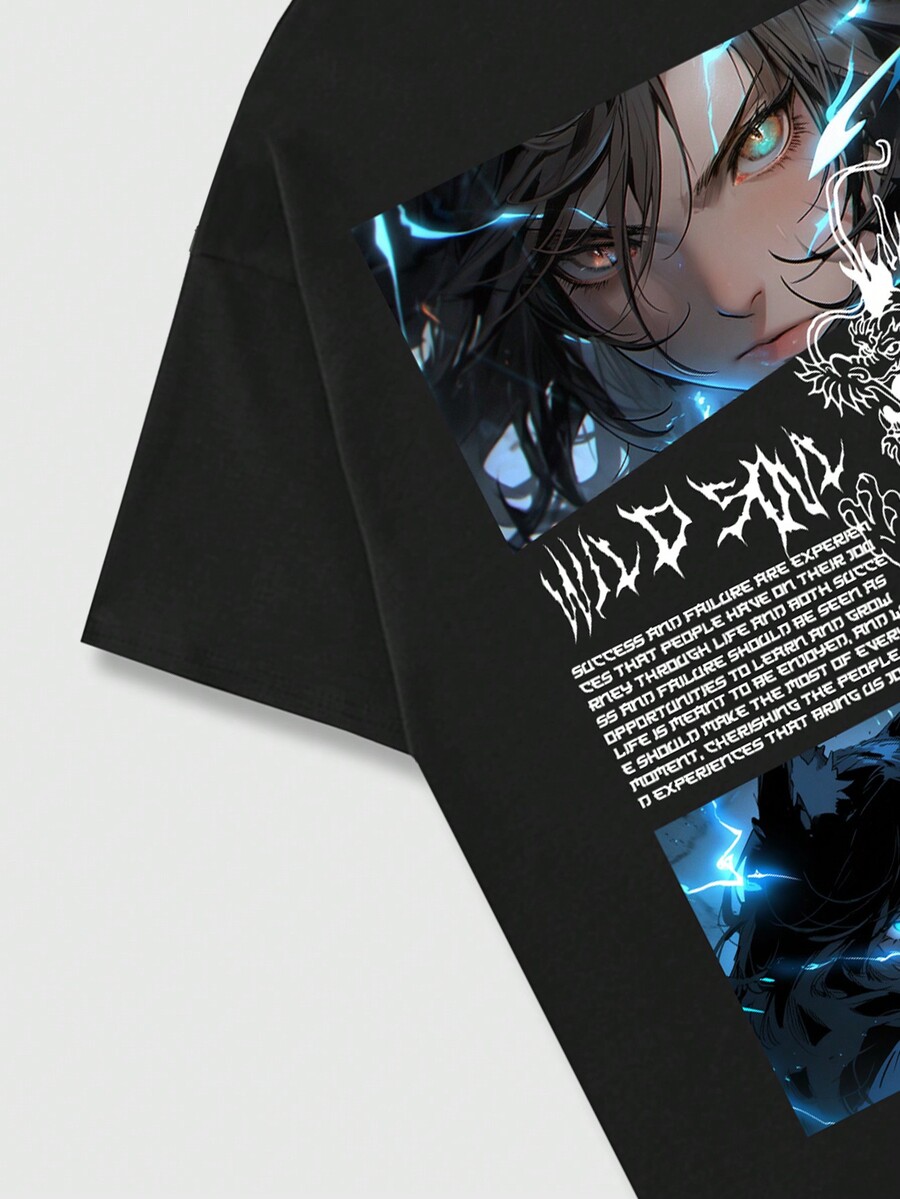 Anime Camiseta De Manga Corta Para Hombre Con Estampado De Dragón Chino Y Caracteres