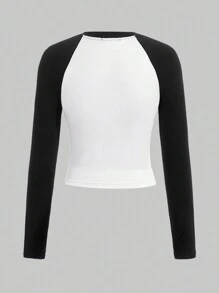 Anime Camiseta De Manga Raglán Con Bloques De Color, Estampado De Figura Y Letra Para Mujer