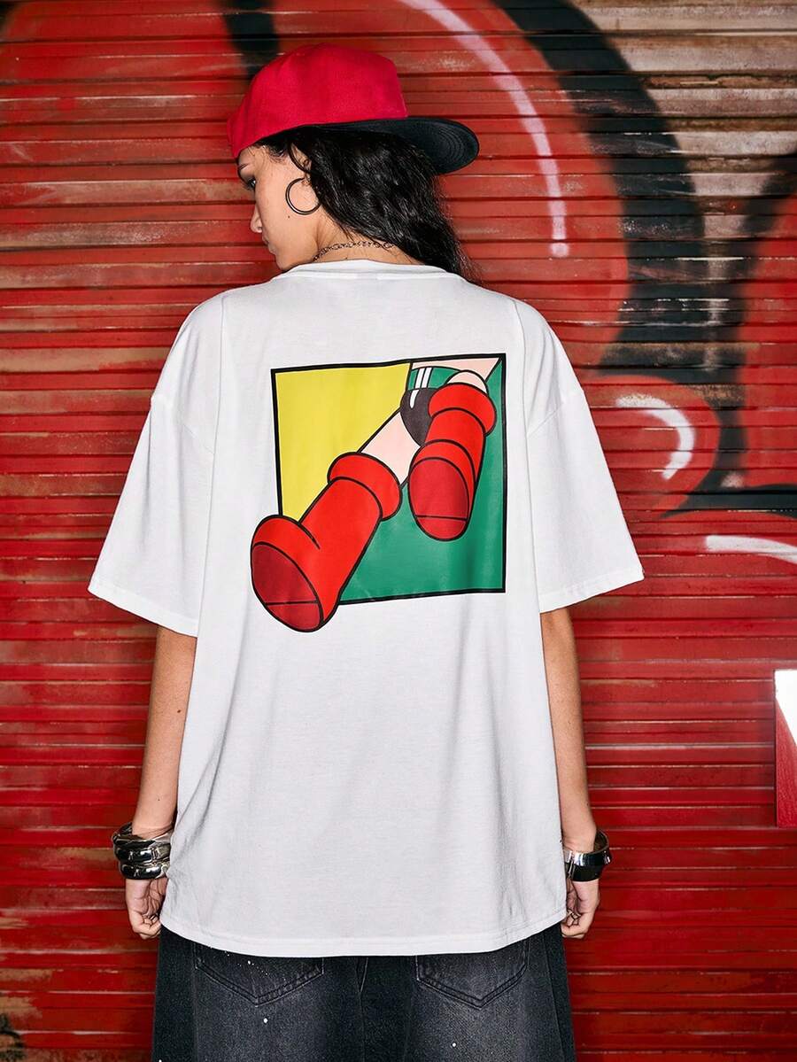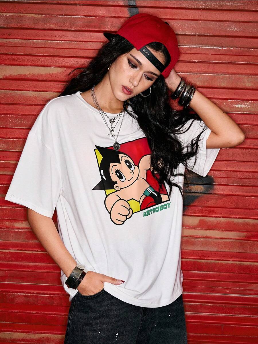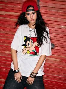 Astro Boy X ROMWE Camiseta blanca holgada de mujer con estampado de dibujos animados lindos