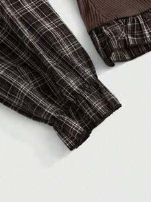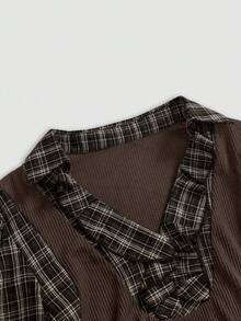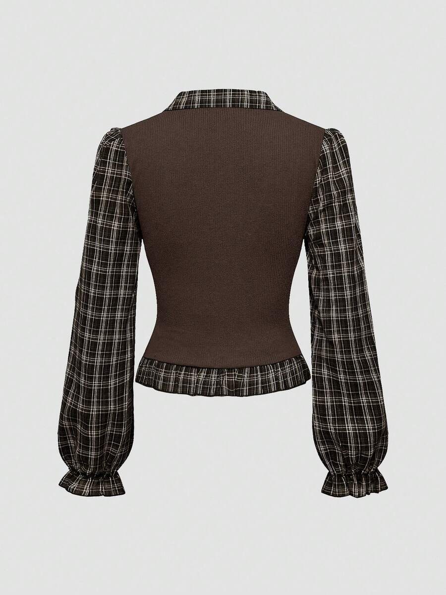 Goth Blusa de manga larga con diseño de cuadros y patchwork en estilo gótico vintage para mujeres, de vuelta al colegio