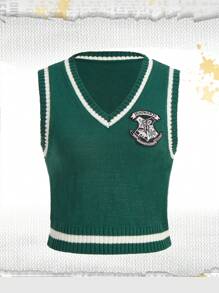 Harry Potter | ROMWE Chaleco de punto distintivo con parche unido en contraste