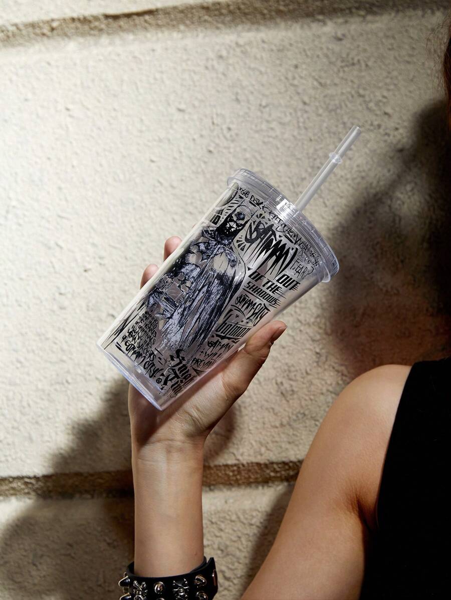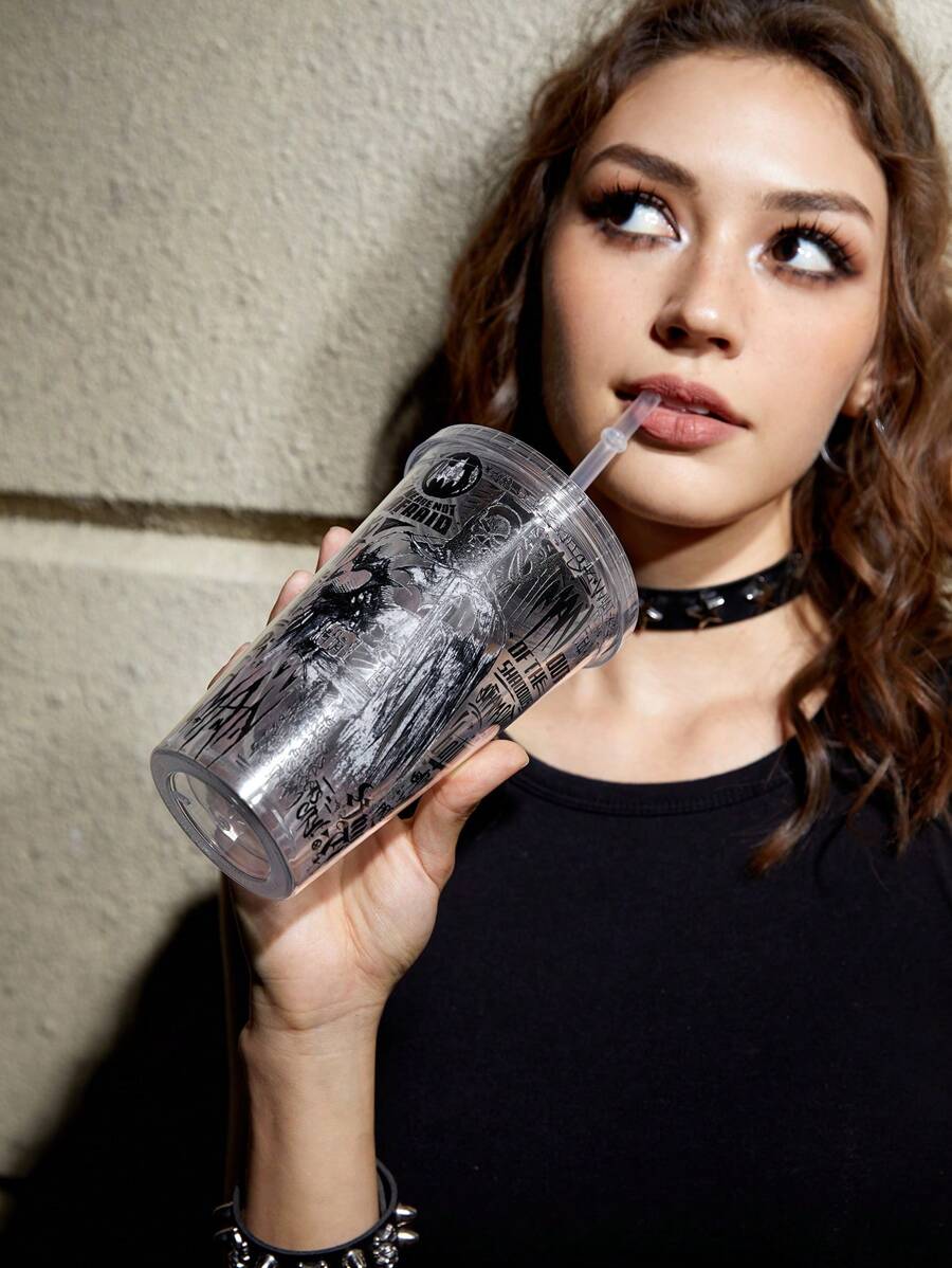 Batman X ROMWE 1 pieza PS Vaso , casual con letra con estampado de figura lavable Botella con tapa