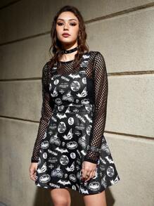 Batman X ROMWE Vestido overol con estampado de dibujos animados sin top