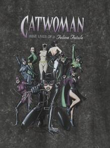 Batman X ROMWE Camiseta con estampado de letra y figura