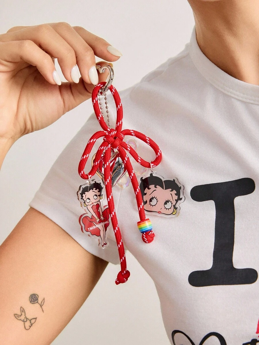 Betty Boop | ROMWE Llavero acrílico con figura de dibujo animado rojo y lindo