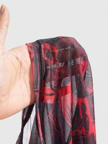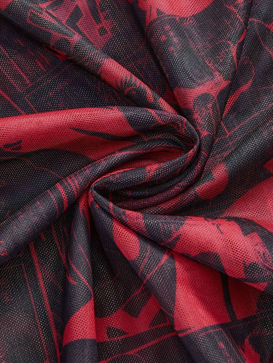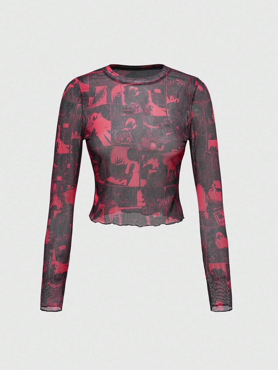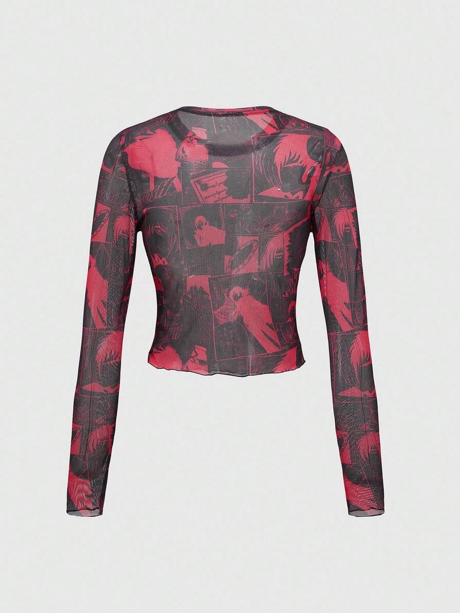 Black Jack X ROMWE Top de manga larga ajustado con estampado total de malla con estilo punk