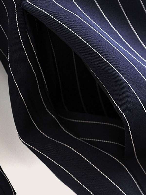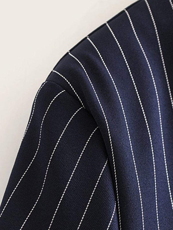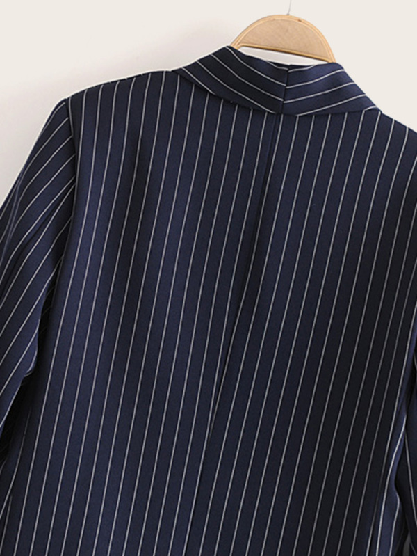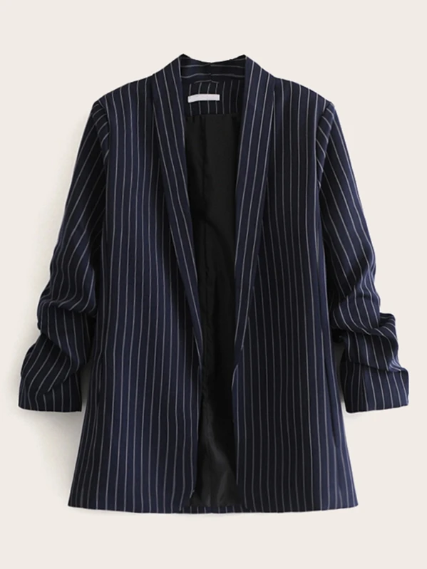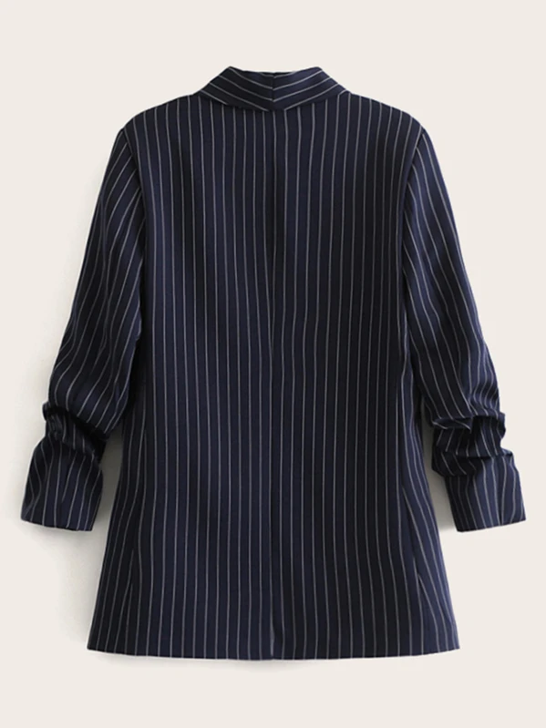 Blazer de rayas verticales de manga fruncido
