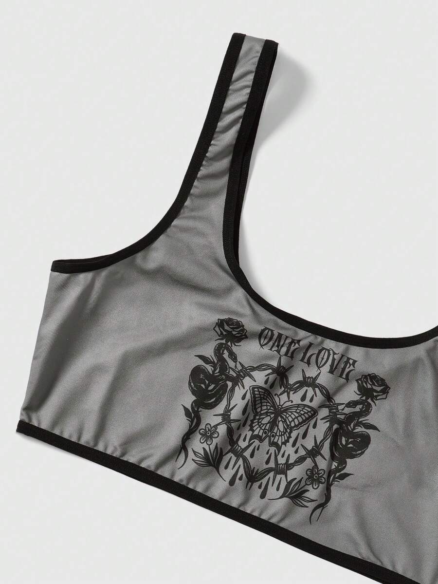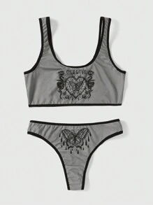 Blunt burn letra y mariposa con estampado Lencería sexy Set