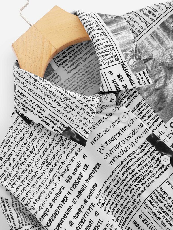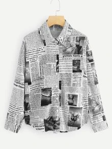 Camisa con botón con estampado de revista