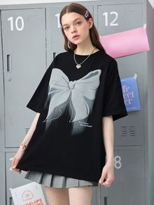 Camiseta de hombros caídos con lazo & con estampado de slogan