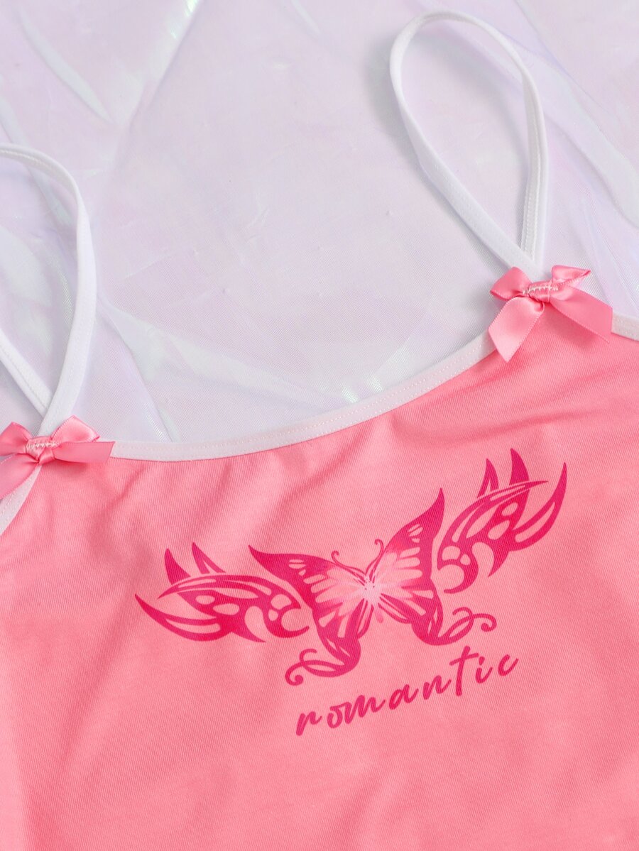 Conjunto de lencería bralette con decoración de moño y gráfico de mariposa