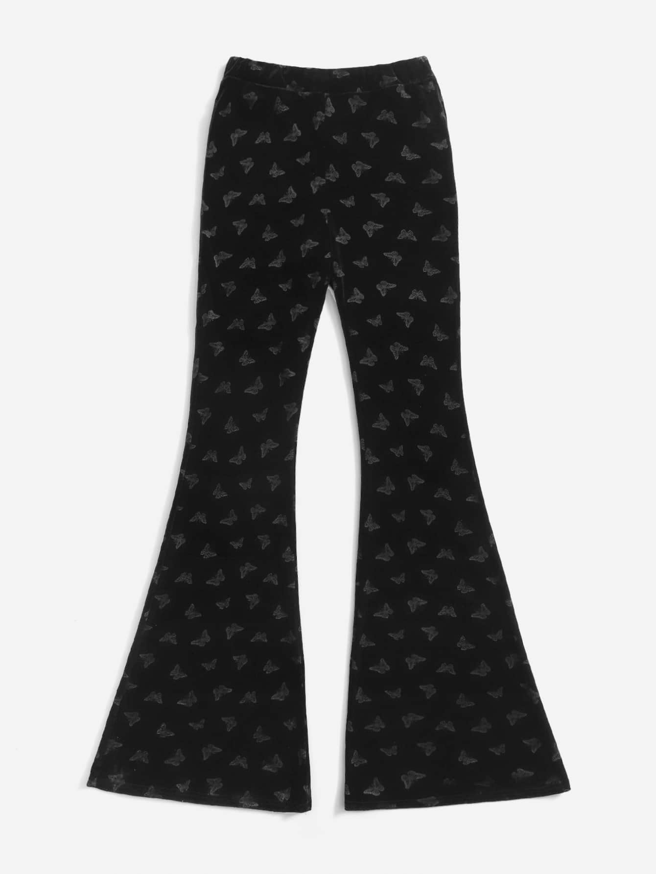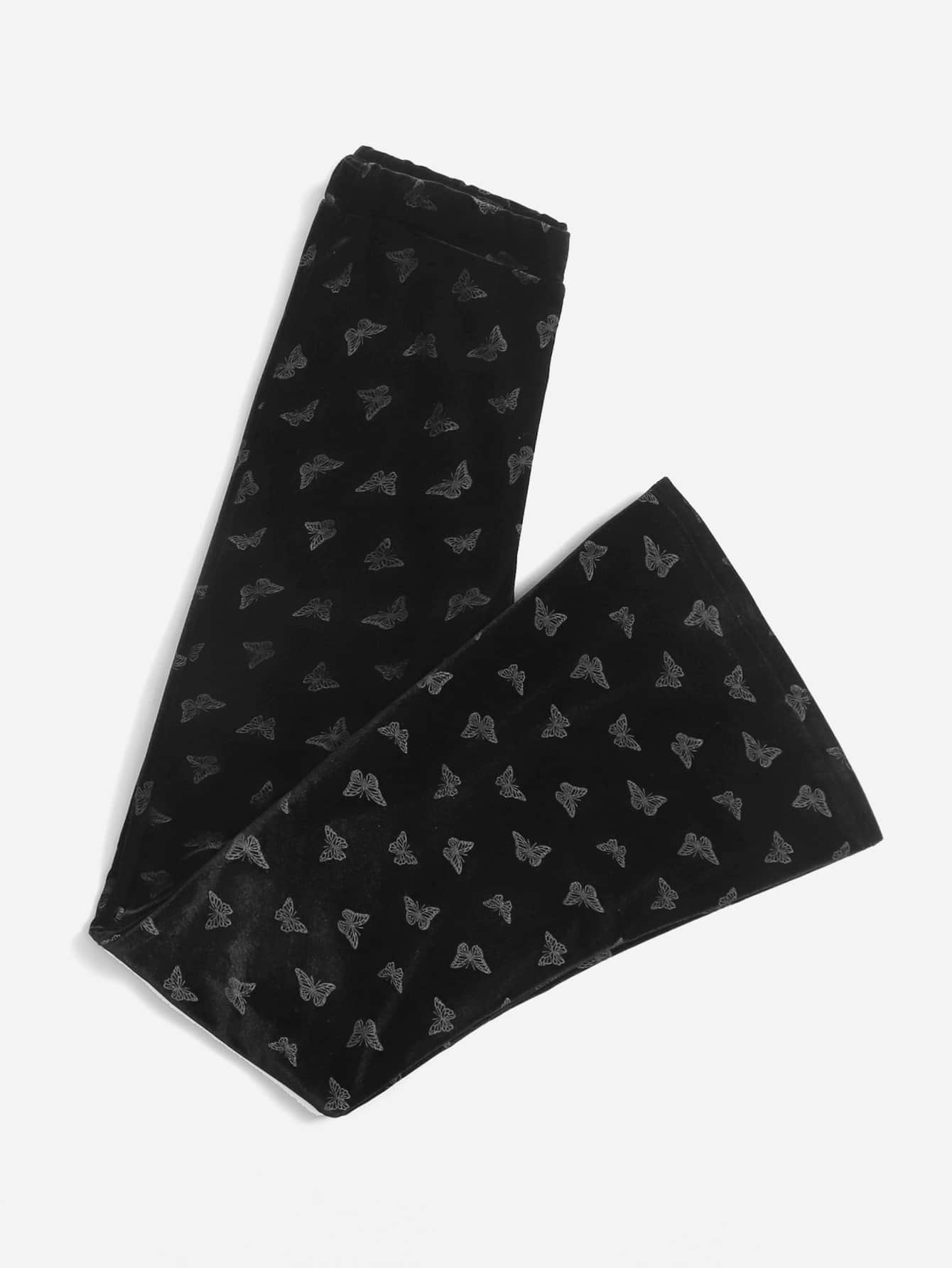 Pantalones con estampado de mariposa de terciopelo de pierna amplia