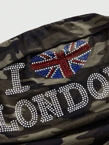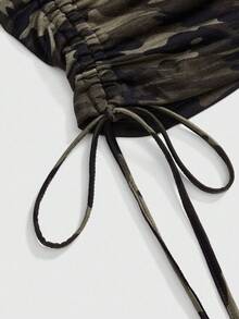Grunge Punk Top tubo con cordón lateral, estampado de camuflaje y decoración de strass en forma de corazón para mujeres