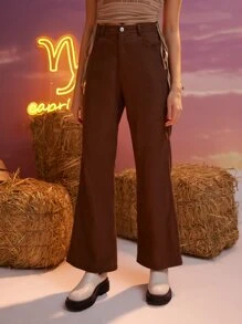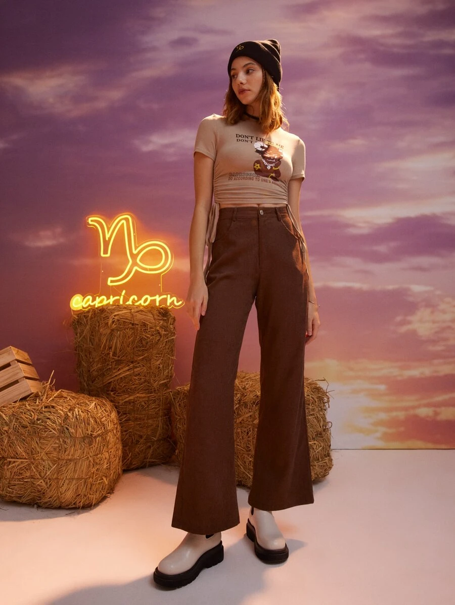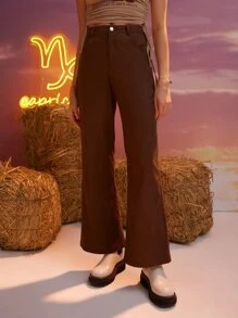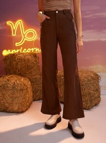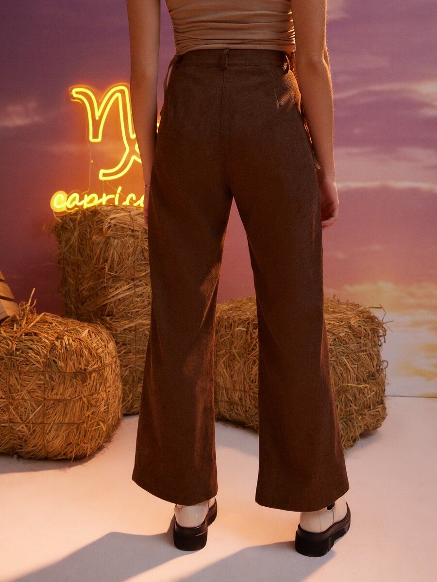 Pantalones unicolor pierna amplia de pana