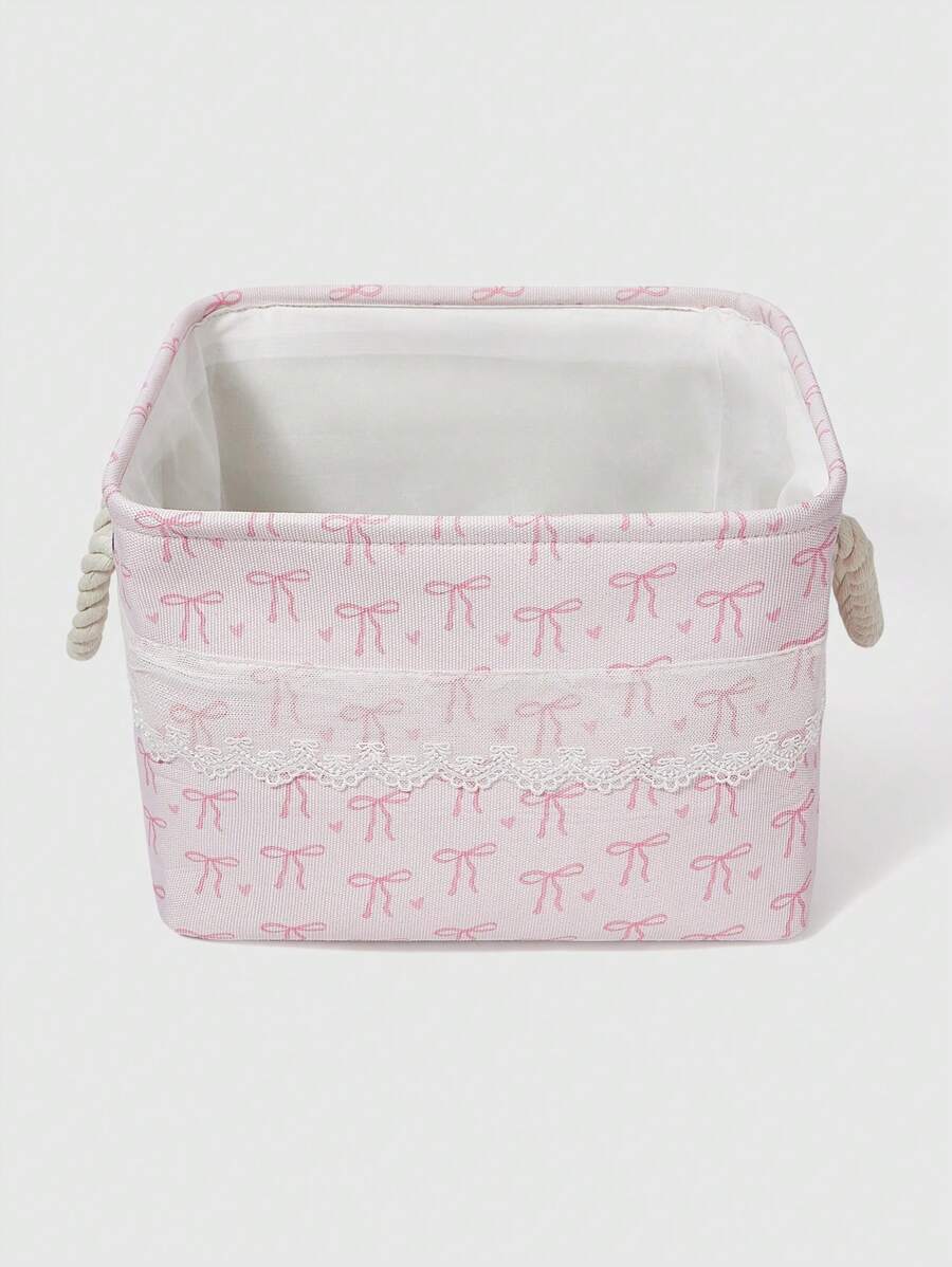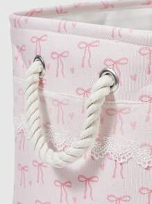 Kawaii Cesta de almacenamiento con lazo rosa de dibujos animados, cesta de lavandería reforzada 919979