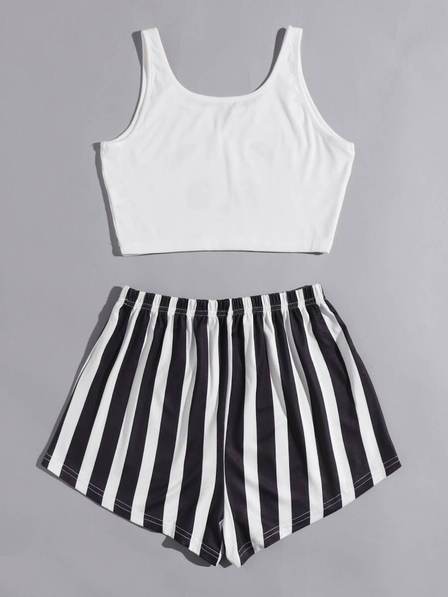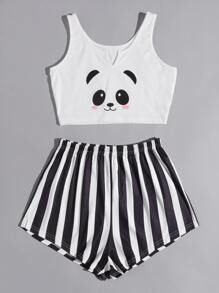 Conjunto de pijama de rayas con dibujos animados