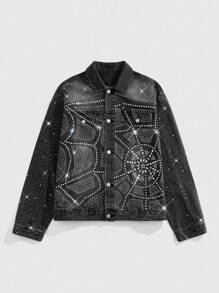 Street Life Chaqueta de mezclilla con mangas largas y pedrería casual y versátil para hombres, otoño