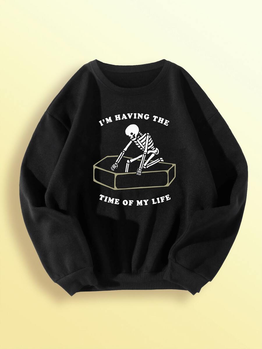 Catsneeze Goth Sudadera con slogan con estampado de cráneo