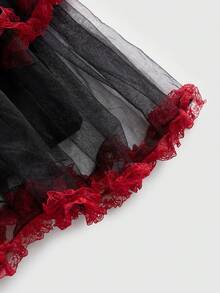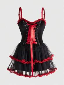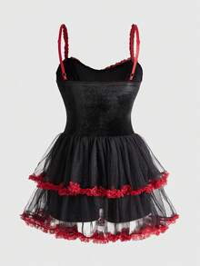 Goth Vestido corto de mujer con parches de terciopelo y malla, estilo retro palaciego, con contrastes de color y encaje