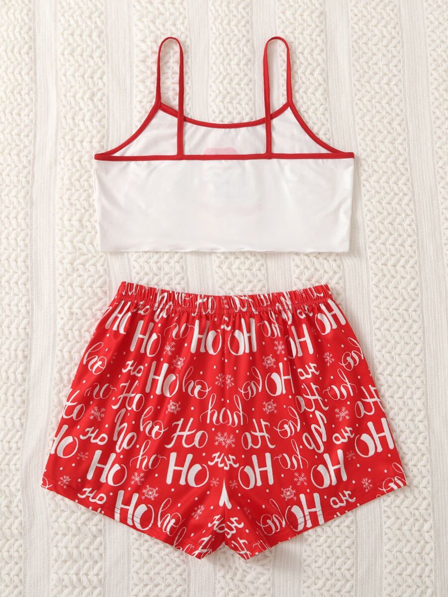Conjunto de pijama Navidad con estampado de letra con lazo