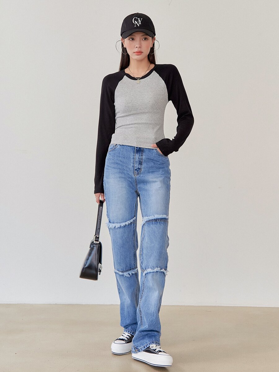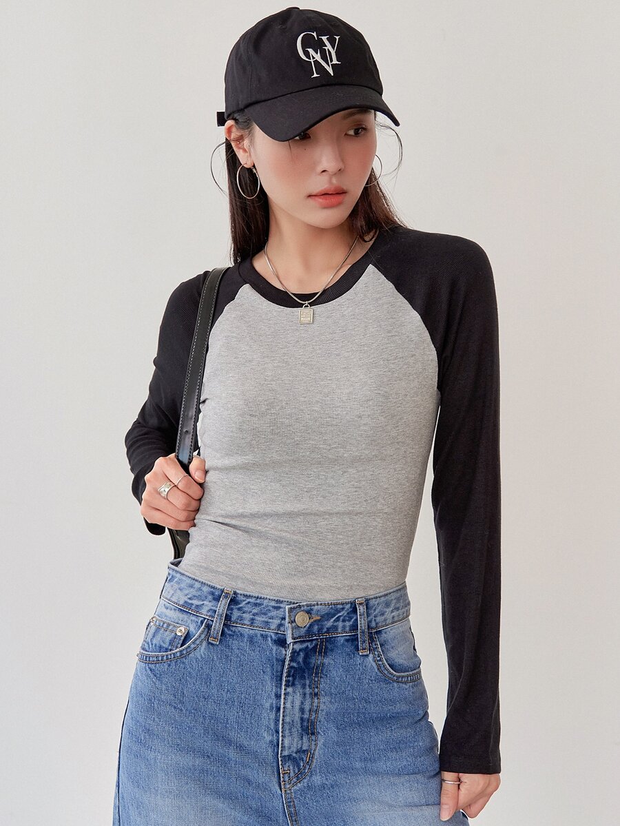 Camiseta de manga raglán con bloques de color, ropa de mujer de otoño