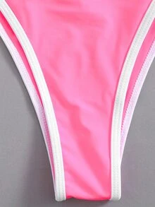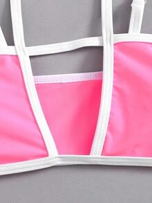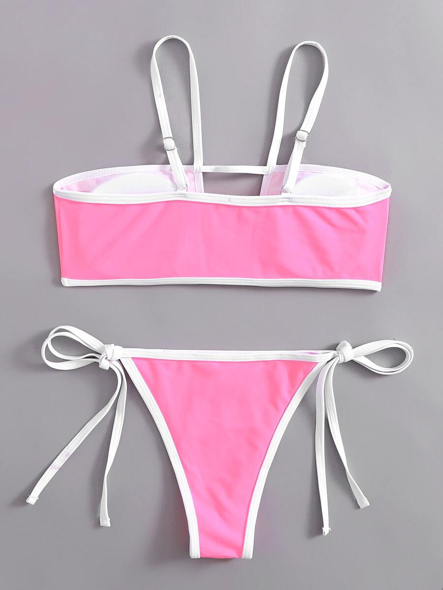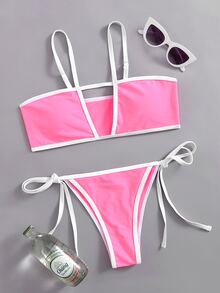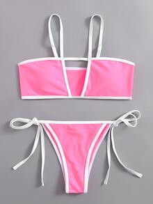 Conjunto de bikini con corte de encaje de contraste y lazos laterales