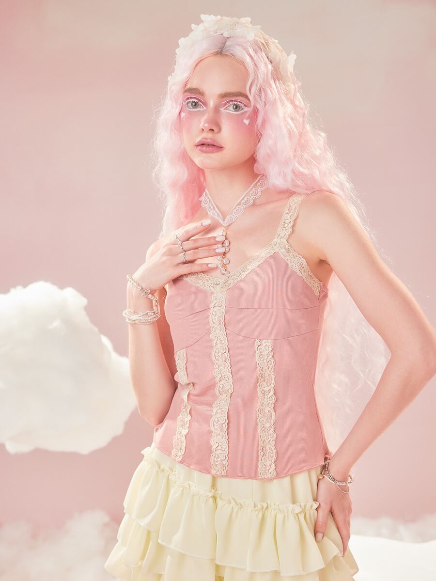 con encaje en contraste Top de tirantes & bajo a capas Falda