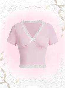 Camiseta con encaje en contraste