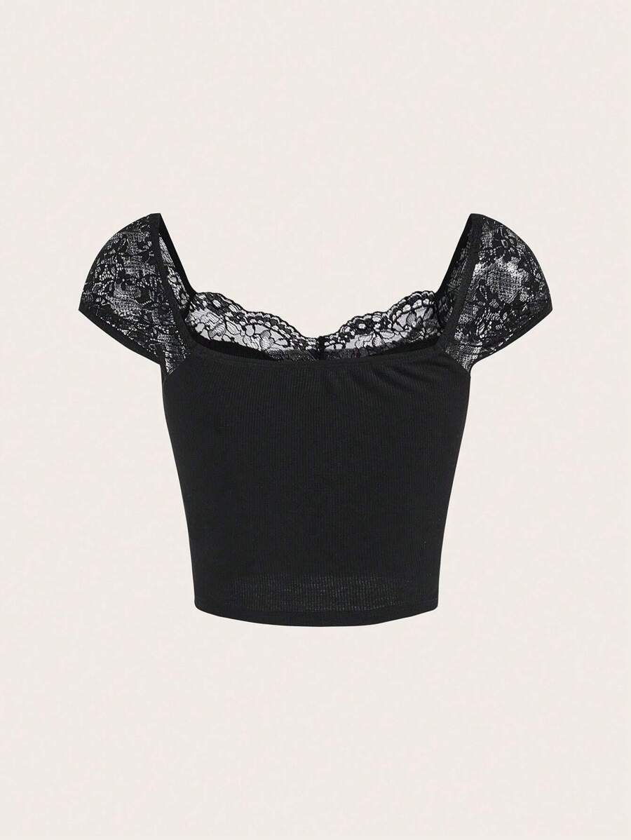 Camiseta con encaje en contraste
